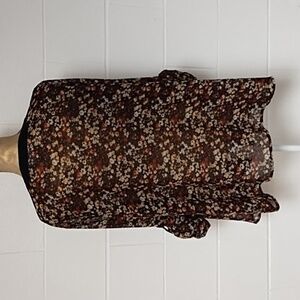 Sag Harbor Flowy Floral Print,1 Button Sheer Cardigan Jacket, Roll Tab Sleeves