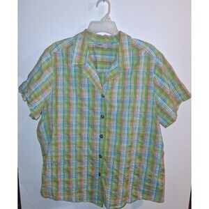Sag Harbor Green Plaid Short Sleeve Button Up Blouse Sz 2X