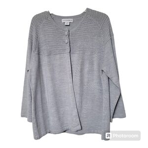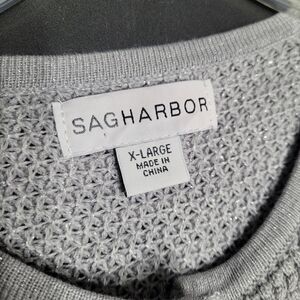 Sag Harbor Grey Sparkly Silver Metallic 2 Button Sweater Size XL