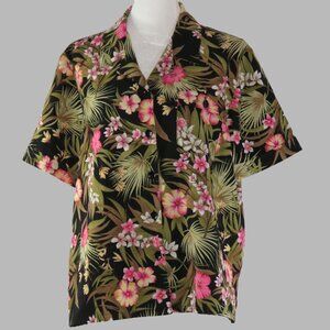 Sag Harbor Women's Hawaiian Floral Print Short Sleeve Button Up Shirt Size M (C866)