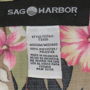 Sag Harbor Hawaiian Floral Print Short Sleeve Button Up Shirt Size M (C866)