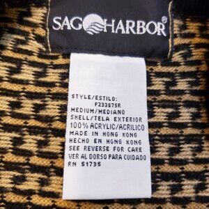 Sag Harbor Tan & Black Houndstooth Print Button Front Crew Neck Cardigan Sweater. 100% acrylic. Good pre-owned condition.