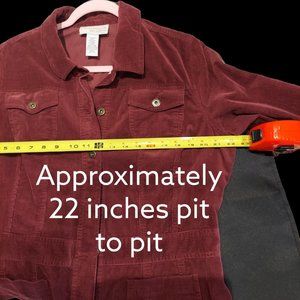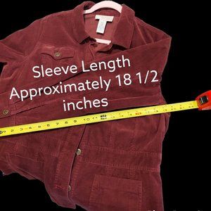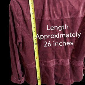 Sag Harbor Jean Company Burgundy Jacket Women's Size 14 in very good used condition. This corduroy jacket has a six-button front closure with two front bottom open pockets and two front button pockets. Great color for fall / winter season.
