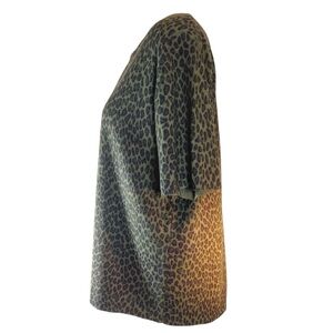 Sag Harbor Leopard Print Short Sleeve Sweater Size XL Olive Green Mob Wi…