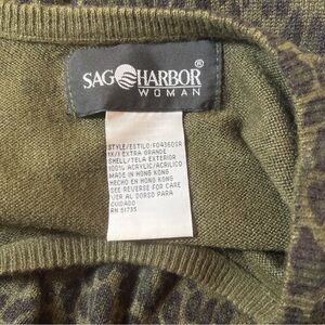 Beautiful olive green leopard print short sleeve sweater from Sag Harbor is a great fall wardrobe piece. Sweater is size XL and in excellent used condition.