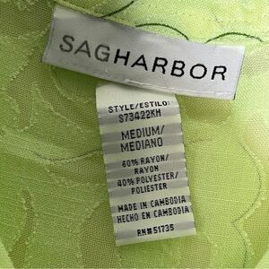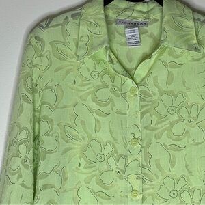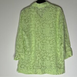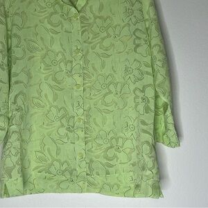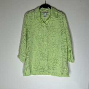 Sag Harbor Lime Green Floral Lace Button Up Collared Top.