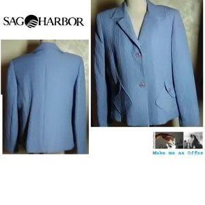 Sag Harbor Lt Blue Quilted Cotton Blazer Size 14