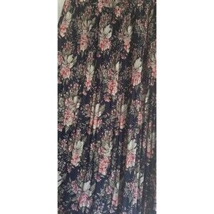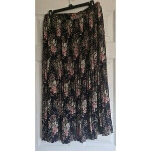 Sag Harbor Navy Pink Floral Pull-on Pleated Skirt Womens Large Long Midi Elastic