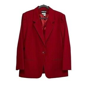 Sag Harbor Petite 100% Pure New Wool Red Blazer Jacket Size 14p