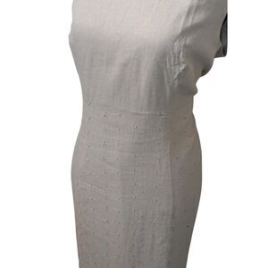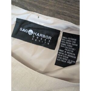 Sag Harbor Petite 14P Linen Sheath Dress Embroidered Eyelet Beige Tan Minimalist