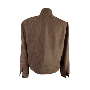 Sag Harbor Petite Brown Gold Embroidered Zip Up Jacket Size 12P Woven Texture