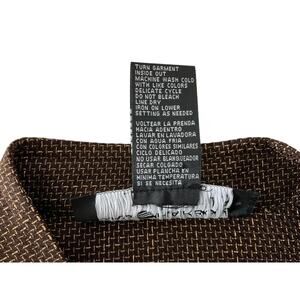 Stylish Sag Harbor Petite zip-up jacket in size 12P, featuring a unique woven brown and gold fabric with intricate embroidered vine detailing on the front. This elegant jacket is perfect for both formal and casual wear, offering a sophisticated design with a high neckline, long sleeves, and a tailored fit. Crafted from 100% polyester, the jacket provides both comfort and durability.