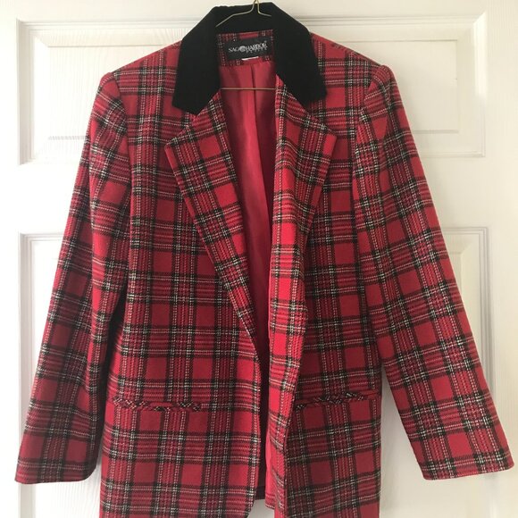 Sag Harbor Petite Size 10–14 Red Plaid Blazer with Black Velvet Collar