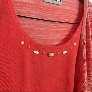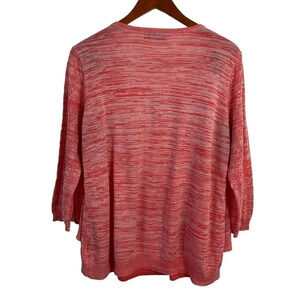 Sag Harbor Pink Layered Top Beaded Neck 3/4 Sleeve Knit Round Neck Pullover