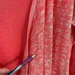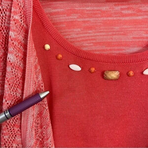 Sag Harbor Pink Layered Top Beaded Neck 3/4 Sleeve Knit Round Neck Pullover Blouse
