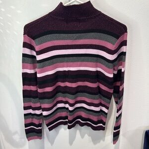Sag Harbor Purple Multicolor Striped Mock Turtleneck Sweater Women's Large