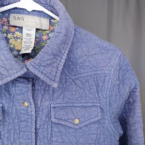 Sag Harbor Quilted Corduroy Jacket Small Blue Snap Collar Cowgirl Western