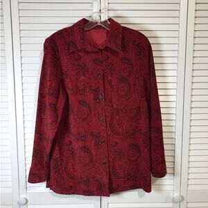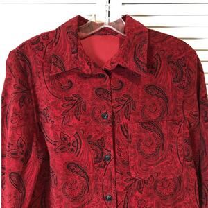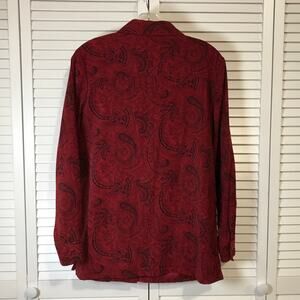 Sag Harbor Red Paisley Floral Collared Long Sleeve Tunic Shirt