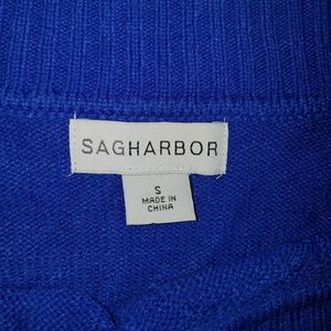 This Sag Harbor Sweater is a small, but fits on the roomy side, so consider it for a medium, too. It's royal blue and has a circle textured design with a wide ribbed hemline. I have another of these in dark green. Excellent condition and very comfy!