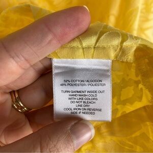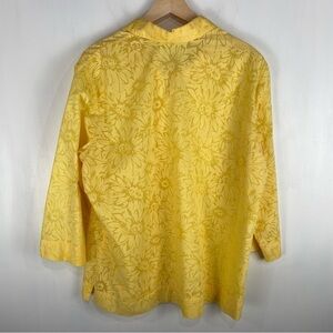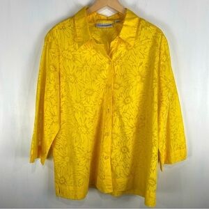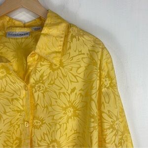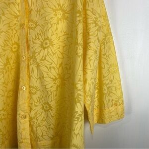 Sag Harbor Semi Sheer Sunflower Floral Button Up Down Blouse Bright Yellow XL