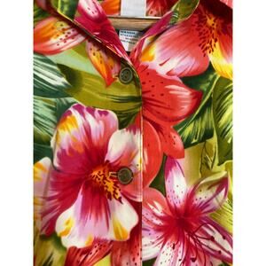 Sag Harbor Shirt Dress Womens 12 Midi Pink Tropical Floral Full Button Front
