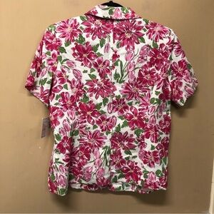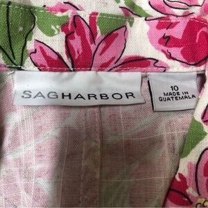 Sag Harbor Short Sleeve Pink Floral Button Front Shirt Linen Blend Size 10 NWT