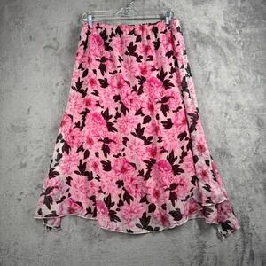 Sag Harbor Skirt Womens 12P Pink Floral Midi A-Line Chiffon Lined Vintage Y2K