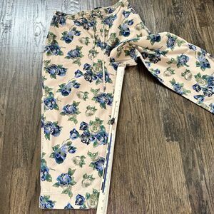 Sag Harbor Sport Women Jacket & Pants Outfit Set Tan Blue Roses Floral Sz Large
