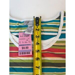 Sag Harbor Sport Women's Multicolor Striped Short Sleeve Shirt Size 3X NWT