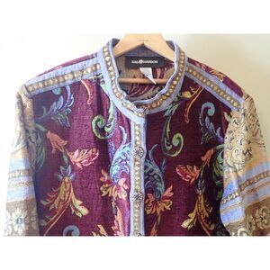 Sag Harbor Statement Ornate Tapestry Jacket Blazer Size 16 Burgundy Purple