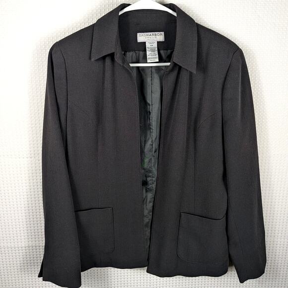 Sag Harbor Stretch Petite 10P Black Blazer Women Open Front Career Jacket