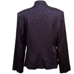 Sag Harbor Suit Jacket Single Breasted 4 Button Fully Lined Purple with Geometric Design Faux Pockets, Square Black Beveled Buttons, Shoulder Pads. Size 14 EUC without stains, rips or tears.
