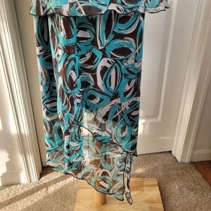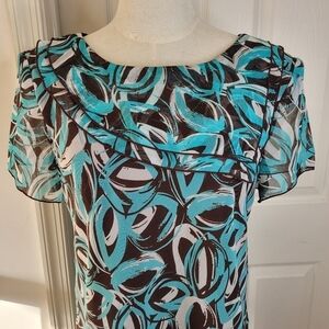 Sag Harbor Turquoise and Brown 2 Piece Set Skirt and Short Sleeve Top Sz 14