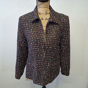 Sag Harbor Tweed Jacket Zippered Lined Multicolored Shoulder Pads Womens Size 10