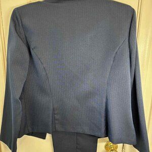 Sag Harbor Two Piece Stripe Pattern Pant Suit Royal Blue Womens Size 12 unlined