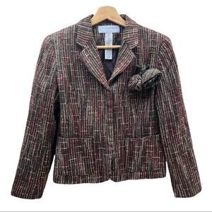 Sag Harbor US 4 Petite Y2K Brown Woven Contrast Stitch Tweed Blazer