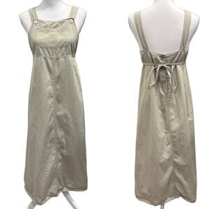 Sag Harbor Vintage 90s Khaki Overall Midi Teacher Dress Jumper Pinafore Cottage