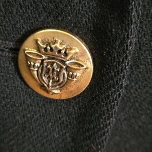 This vintage Sag Harbor blazer features a classic design with ornate gold buttons and a fully lined interior. Made from 100% pure wool, it offers both style and warmth, suitable for academia-inspired outfits.
