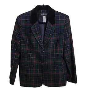 Sag Harbor Vintage Green Metallic Thread Plaid Dark Academia Blazer Size 8