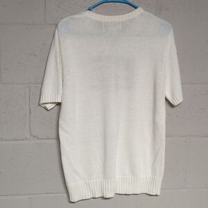 Sag Harbor White Sweater with Flag Design, Medium, Americana, Vintage