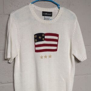 Sag Harbor White Sweater with Flag Design, Americana, Vintage