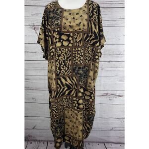 Sag Harbor Woman Black Brown Mixed Print Short Sleeve Midi Dress Size 26W
