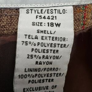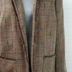 Sag Harbor Woman Tweed Blazer Women's Size 18W Brown Plaid Fringe Detailing