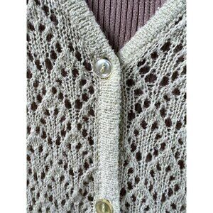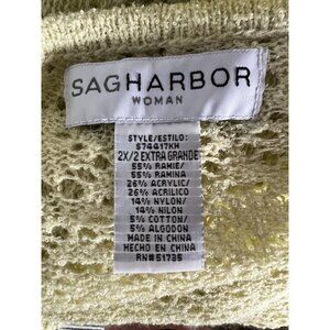 Sag Harbor Womens 2X Vintage Yellow Open Knit Cardigan Sweater Button Front