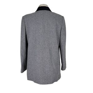 Sag Harbor Womens Blazer Size 12 Black White Houndstooth Velour Collar Long Wool