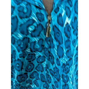 Sag Harbor Womens Blue Leopard Print Sleeveless Blouse Size 14 Zip Front
