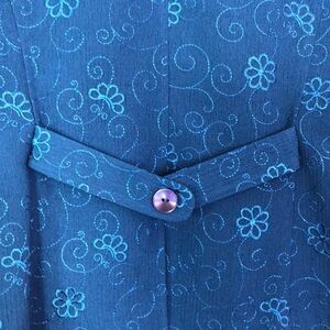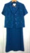 Women’s Embroidered Two Piece Suit Blue Dress Short sleeve Faux pockets Buttons
