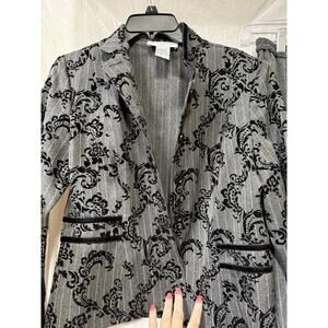 Sag Harbor Women's Gray Pin Stripe Paisley Long Sleeve Pant Suit Set Sz 8