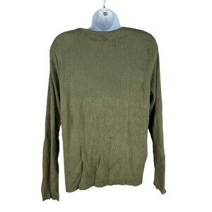 Sag Harbor Womens Green V Neck Ribbed Button Front Cardigan Sweater Size S