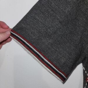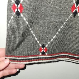 Sag Harbor short sleeve mock neck sweater in size large. Gray knit with preppy argyle pattern in red, black, and white. Timeless retro vibe that’s perfect for fall layering or casual styling.